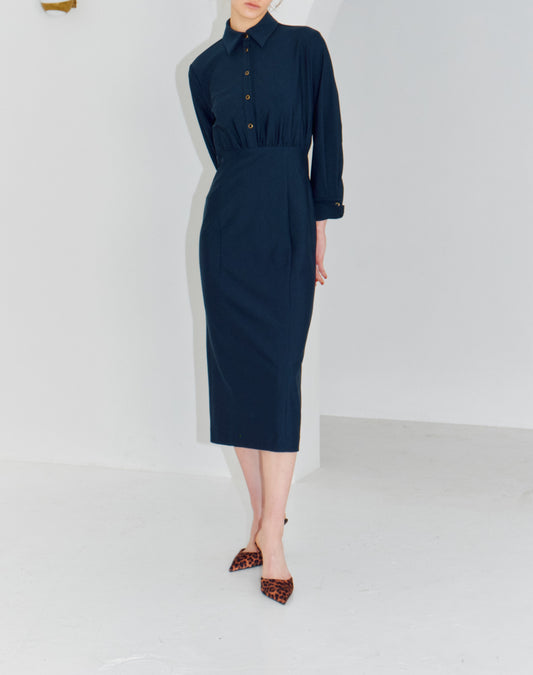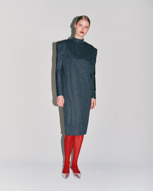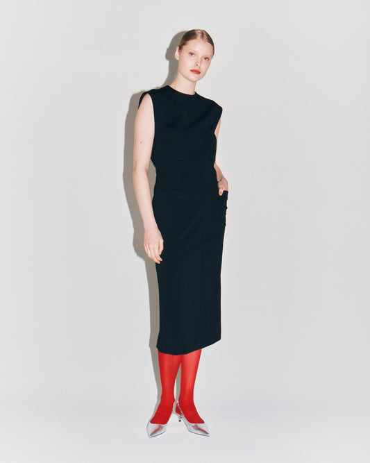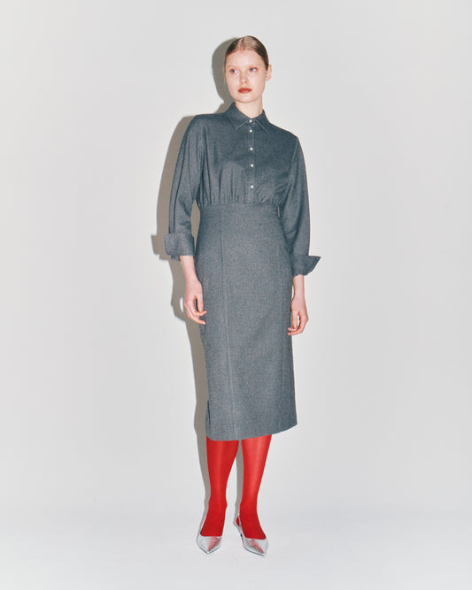 WOOL JRSY DRAW-CORD GATHER DRESS