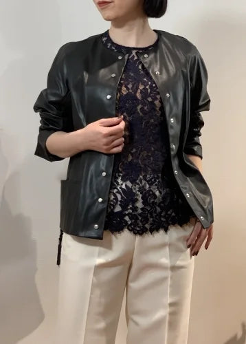 【LAST ONE】F/LEATHER SNAP-DOT CREW JACKET