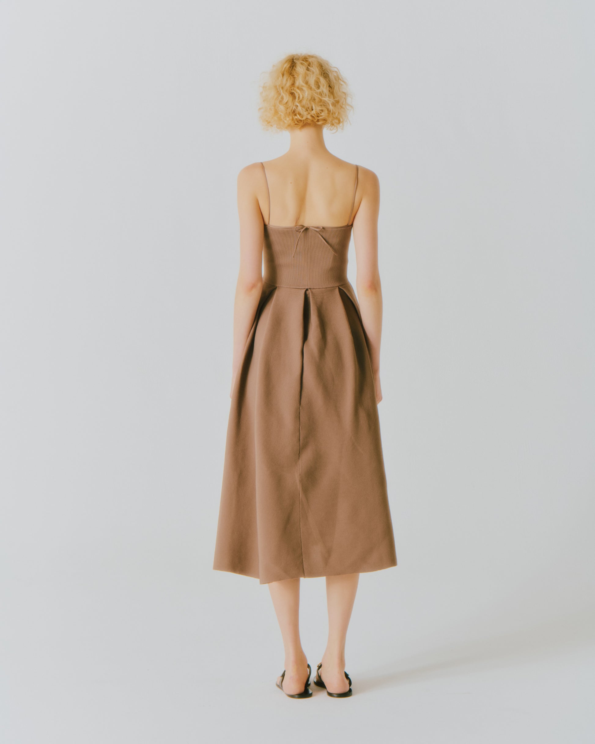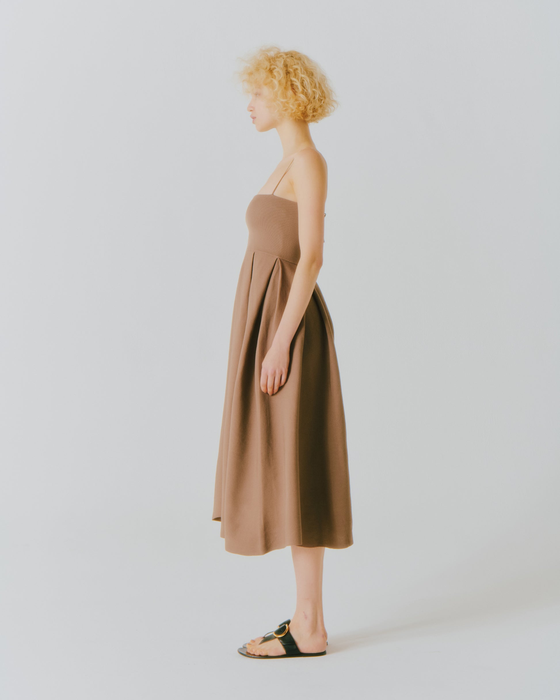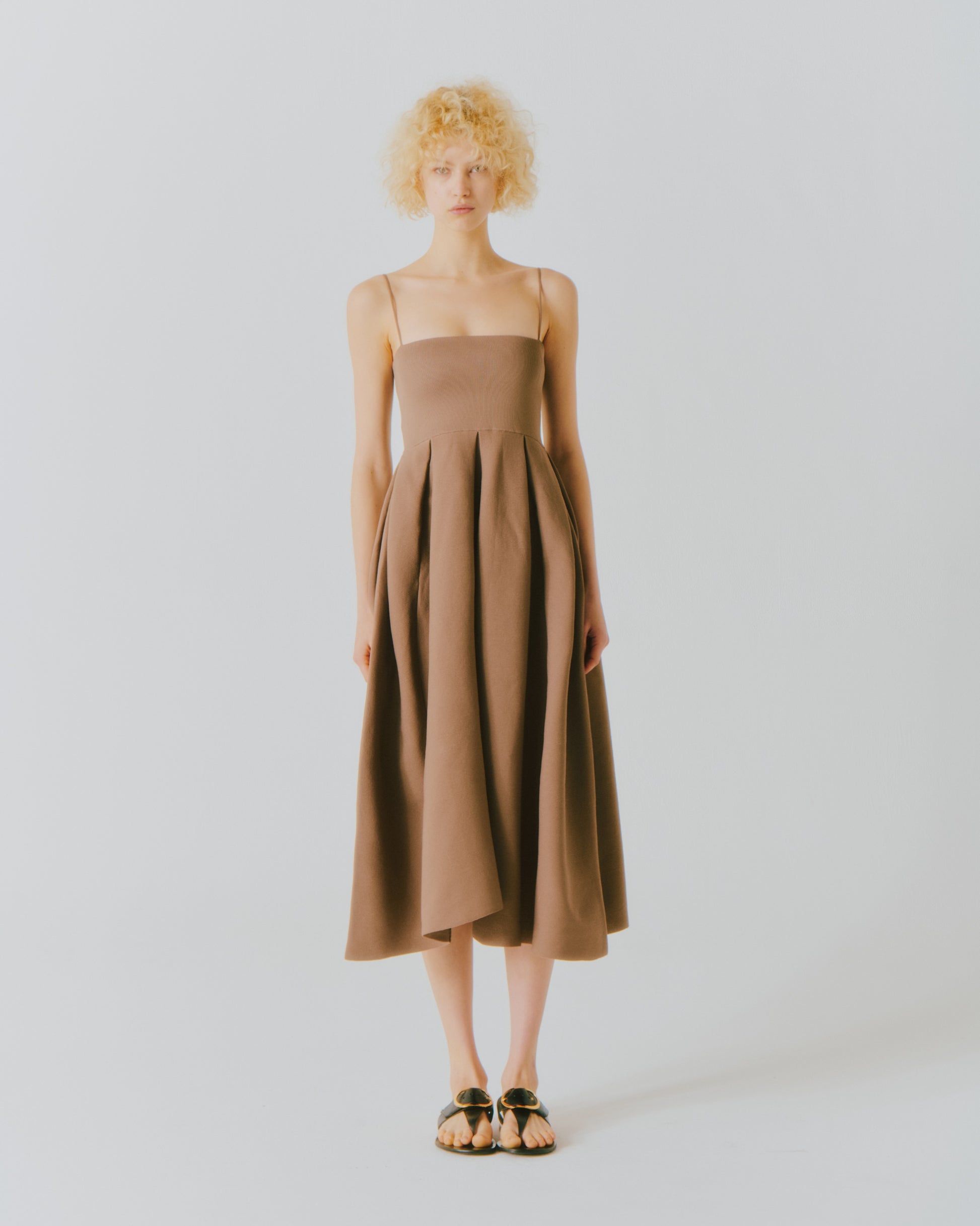 Introducing an updated version of last year's popular bare dress. The skirt has been changed to a lighter knit fabric, and various in-box pleats have been applied to create a flared silhouette. It comes with shoulder straps so you can wear it as a bare dress with peace of mind! It's made of dry-touch polyester and feels great against the skin. It's a 2-way item that can be worn as both a bare dress and a skirt.