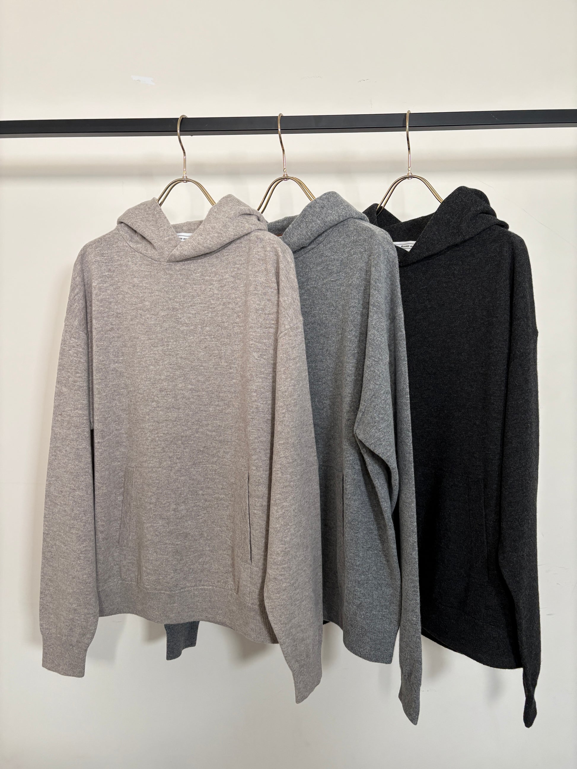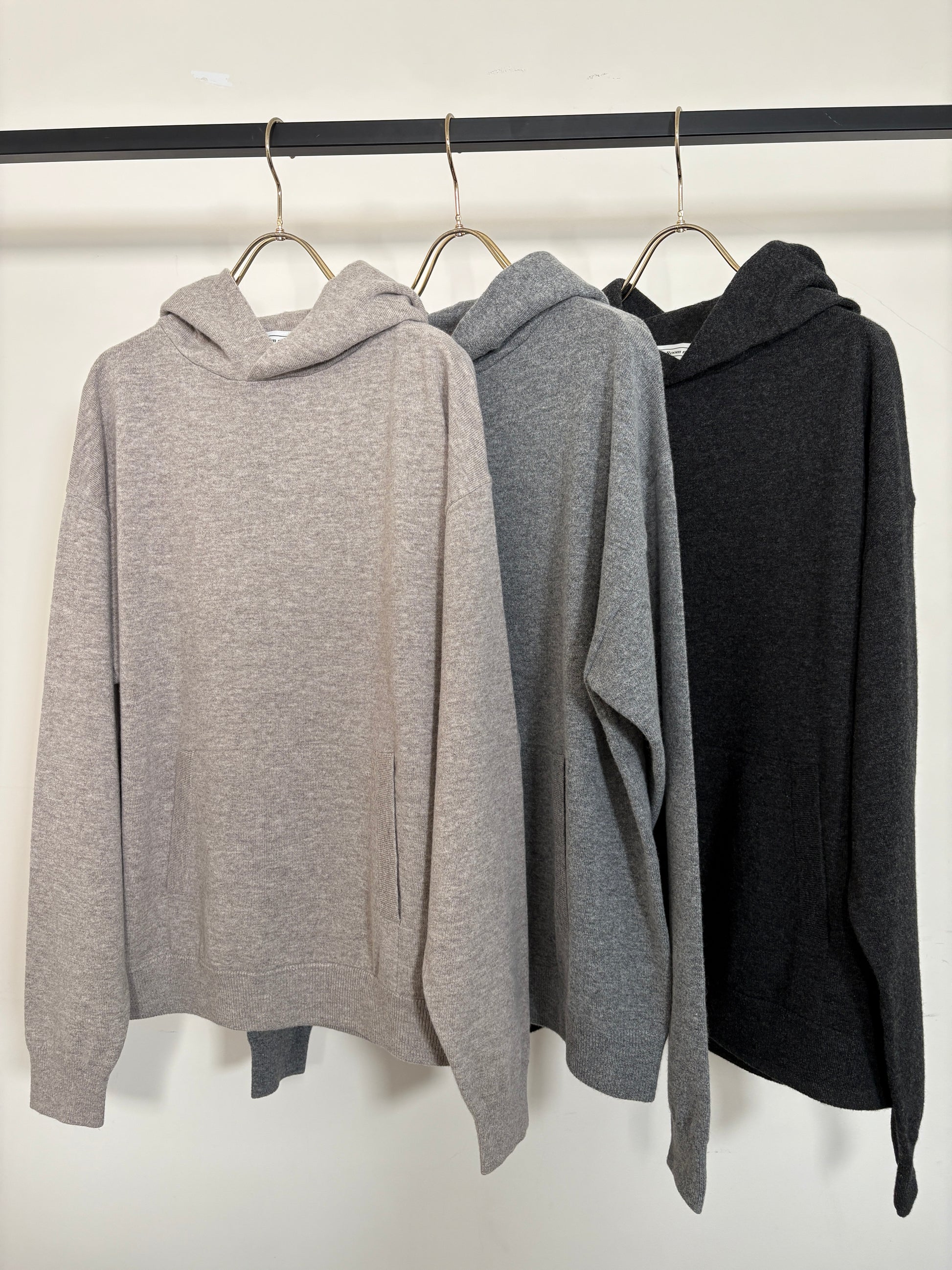 ワンマイルにも旅先にも、品よく寄り添うフーディー。ありそうでない大人顔なニットトップス。お勧めです。