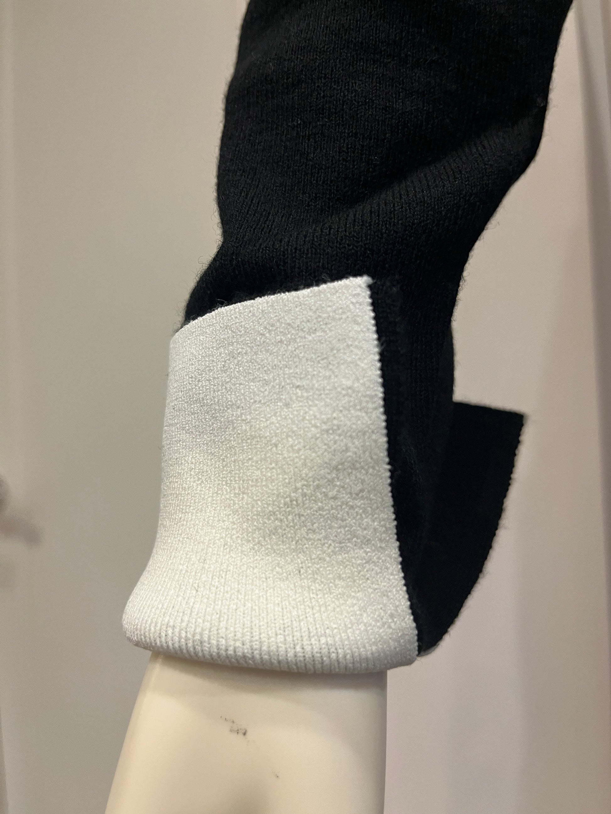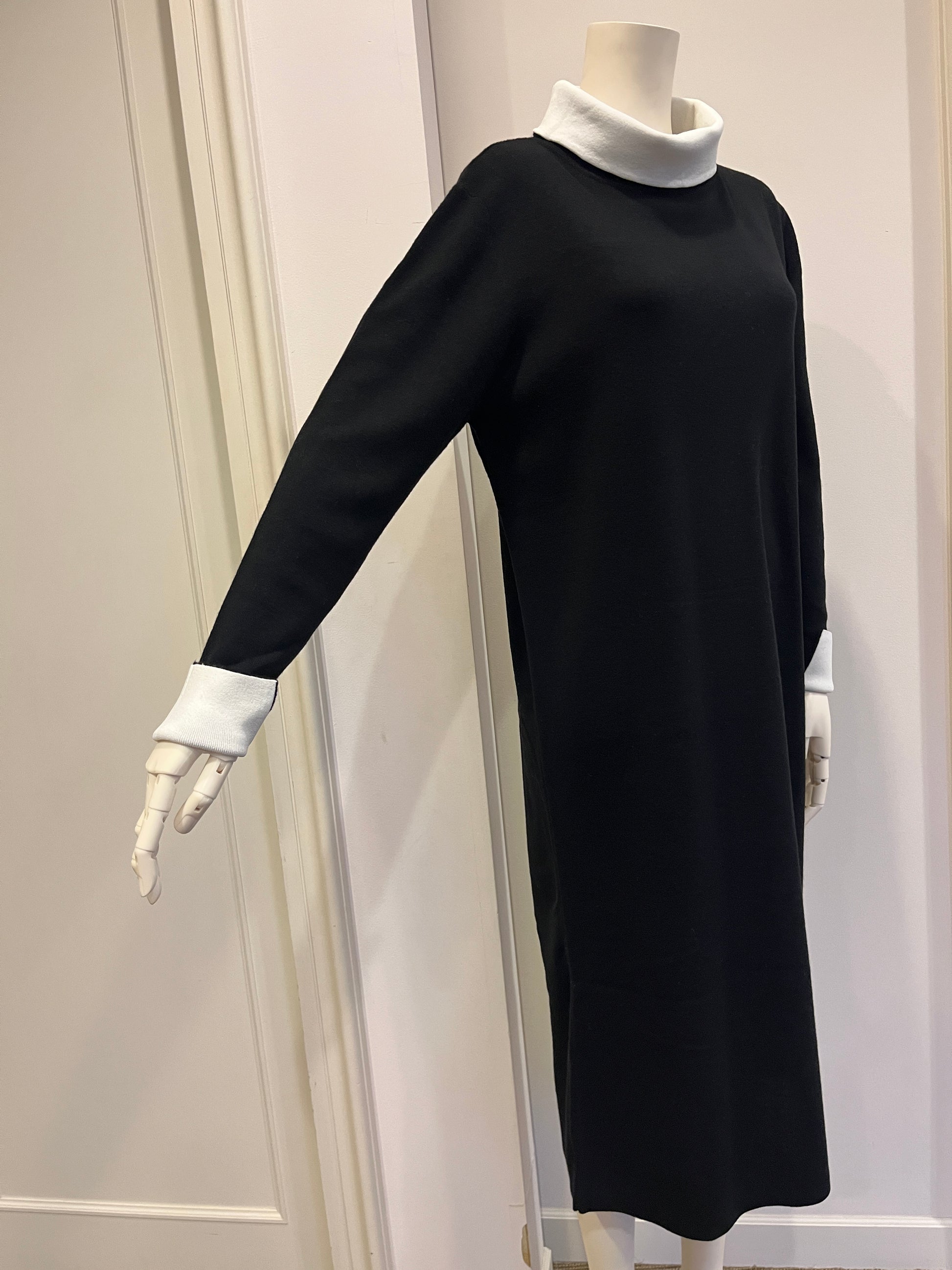Room no.8 BLACKで大人気のバイカラーニットドレス。 今シーズンは柔らかくロールアップされたネックとスリット入りのバイカラーデザインがお目見え。体のラインを拾わないすっきりとしたシルエットもスタイルアップも完成させてくれます。 カジュアルとキレイ目を兼ね備えたニットドレスは定番的に人気の商品です。