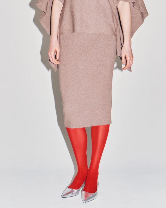 シンプリズムなIラインのニットスカート。後ろ中心部分に編み地違いのラインを入れることでヒップラインを美しく見せ、Iライン効果ですっきりシルエットが叶う一枚。ウエストはストレッチゴムでストレスフリー。一枚持っているとスタイリングに取り入れやすいアイテムです。