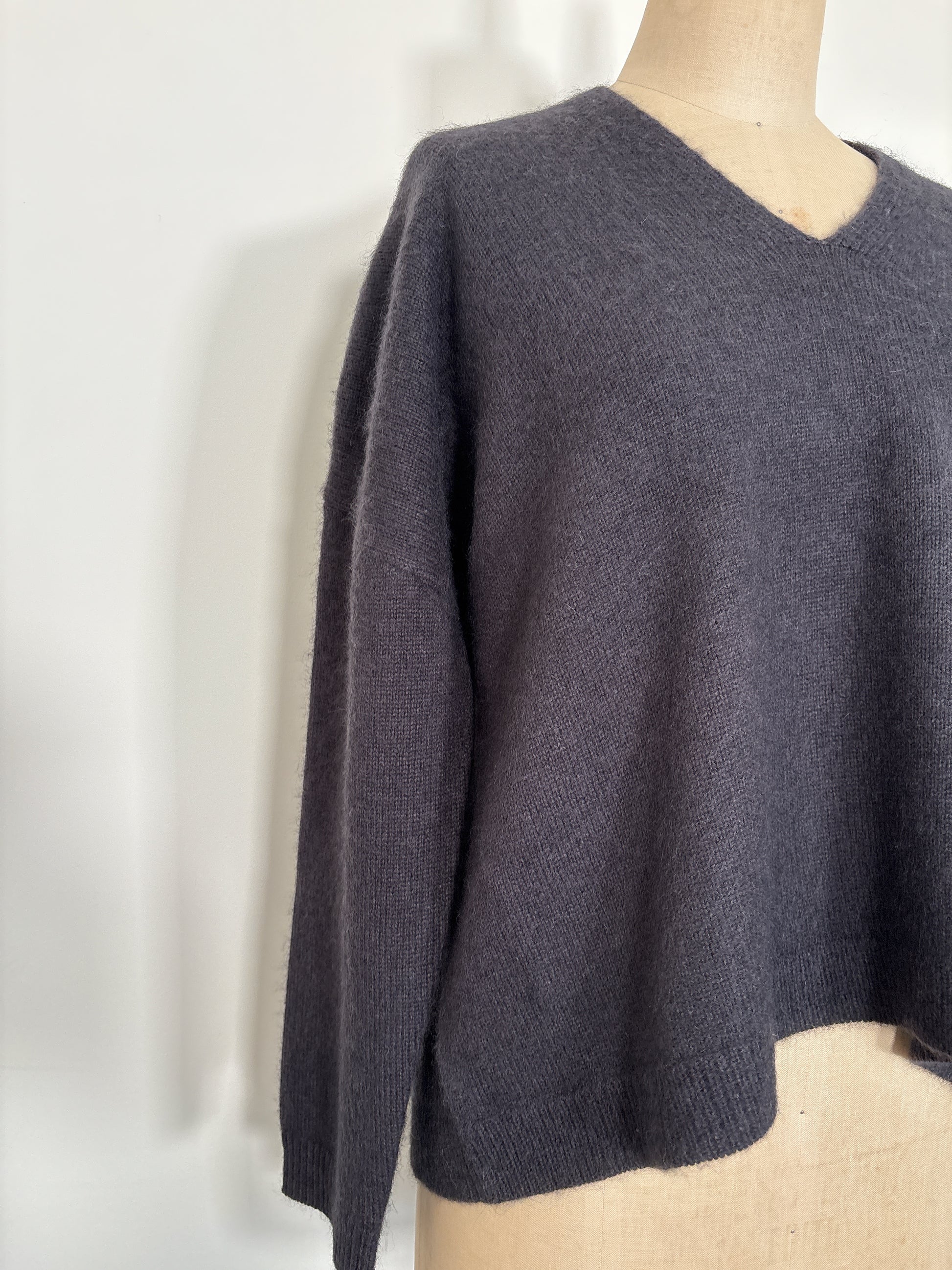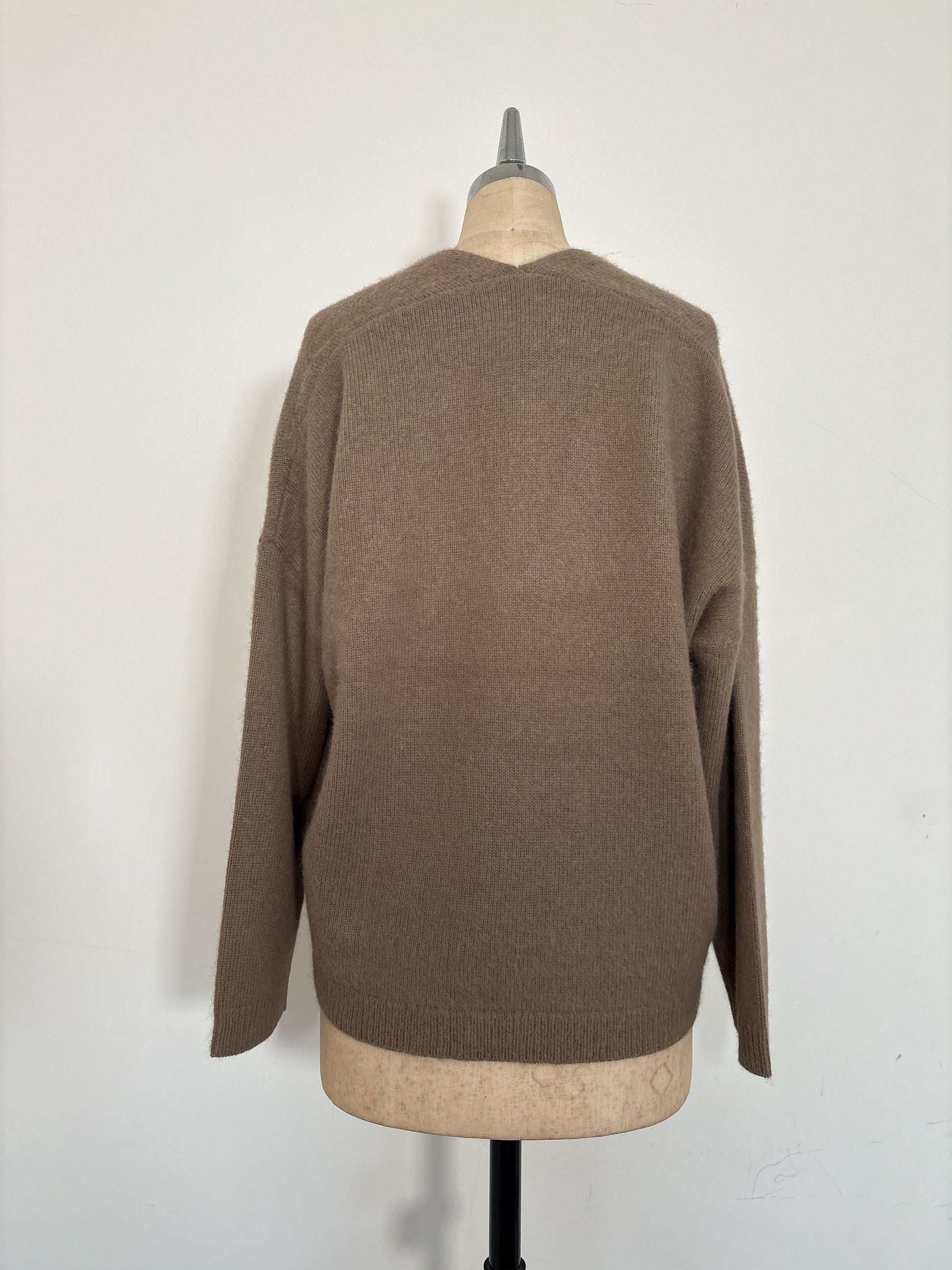 柔らかな毛足と上品な光沢が魅力のラクーンブレンドニット。ふんわりとした暖かさの中に凛としたモード感を宿し、冬の装いをラグジュアリーに引き立てます。デコルテを美しく魅せるネック部分はシンプリズムなスリットのデザイン。後ろに抜けた感じで着ていただくとドレーピングが美しいシルエットに!スカートにもパンツにも合わせやすい着丈もコーディネートの幅があるアイテムです。