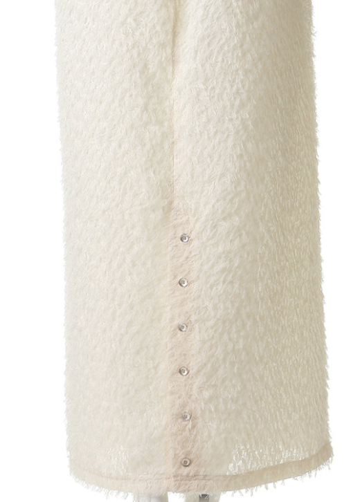 シンプルながら存在感のある佇まいは、同素材のトップスとのセットアップでよりモードな印象に。バックスタイルのボタン付きベントが足捌きをしやすくし、かつエレガントな魅せが可能です。