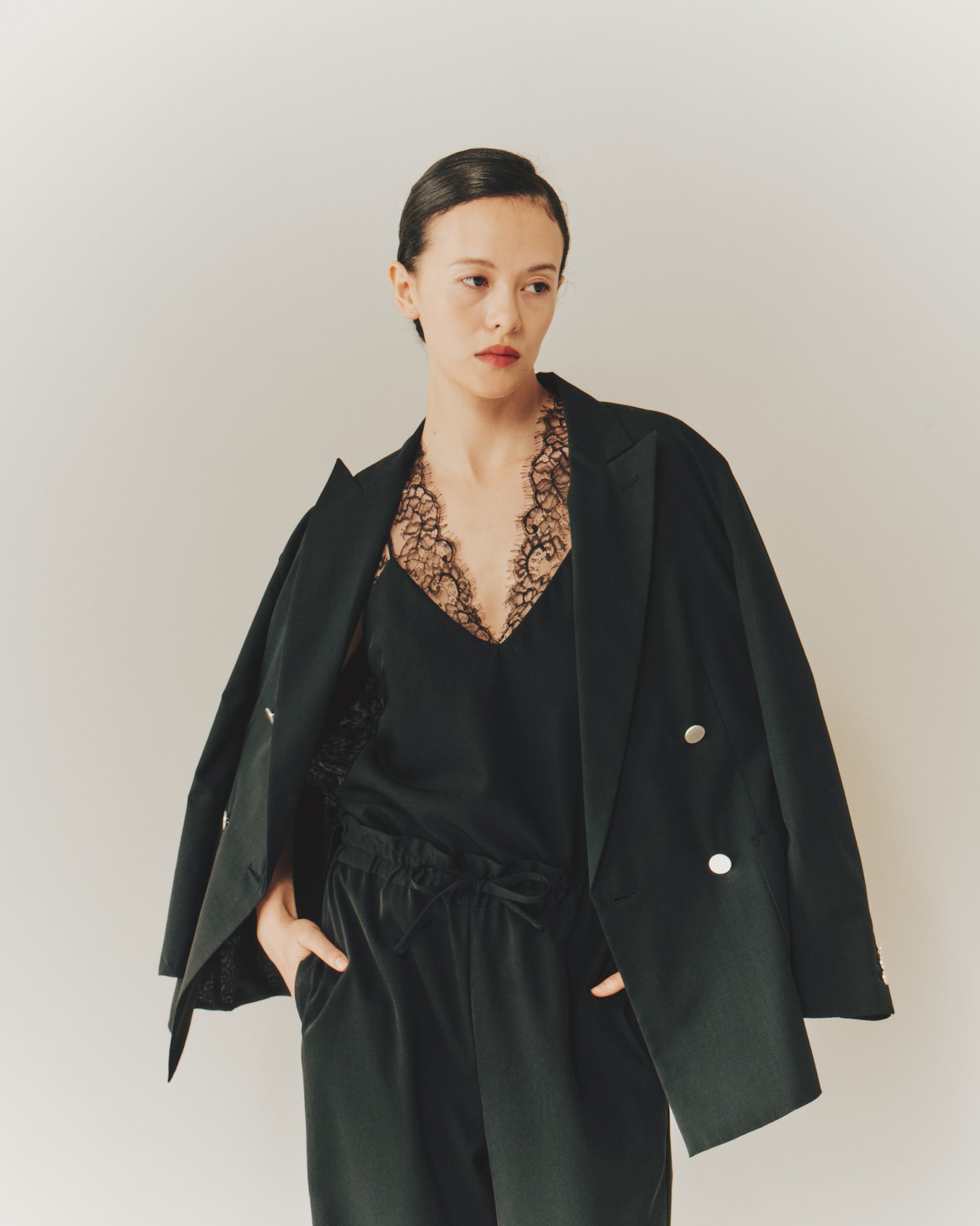ジャケットのインに重ねれば、センシュアルで洗練されたコントラストを演出。