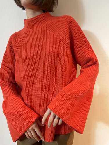 定番ユースに押さえておきたい1枚 デイリーに着たいクルーネックセーター。ウールにカシミヤ素材をブレンドし、ソフトな肌触りと暖かな風合いを加速。立体的なベルスリーブがなんともエレガントな雰囲気に!また、デザインハイネックがこなれ感があって、かつ暖かさもありと優れもの。なゆとりをもたせたシルエットとスリーブに、深めのサイドスリットがトレンドの抜け感を演出。お手持ちのボトムスとも悩まずコーディネートできるからデイリーに欲しい1着です。 お勧めカラーはオレンジレッド。顔写りもバッチリで主役になれる!そんな1着です。